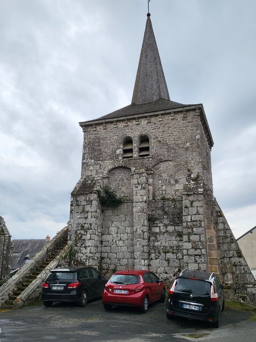 Dans sa construction primitive, l'église paraît dater de la fin du 11e siècle. Elle est entièrement en granit du pays et comprenait une nef de quatre travées avec bas-côtés, deux transepts avec absidiole, un choeur circulaire entouré d'un déambulatoire. En avant de la nef se trouvait le clocher dont le rez-de-chaussée formait porche, et dont la partie basse conserve, encastrés, des fragments gallo-romains dont un bas-relief dit "Mercure de Toulx". Le clocher primitif est détruit jusqu'à la voûte du porche, les trois premières travées de la nef sont dérasées jusqu'aux fondations, les transepts primitifs n'existent plus et le mur du déambulatoire du choeur a été éventré. La plupart des mutilations subies par l'édifice remontent aux guerres de Religion. Au 16e siècle, construction des contreforts pour consolider l'édifice, fermeture par un mur de la travée restante de la nef et élévation, sur les bases de l'ancien clocher, d'un étage qui permit la réinstallation des cloches. Décor peint du 19e siècle.
