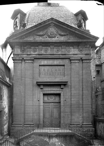 La communauté des Visitandines s'installa sur cet emplacement en 1643. La démolition de certains bâtiments vétustes, leur reconstruction et des embellissements furent entrepris vers 1770. La nouvelle chapelle, commencée en 1771, fut consacrée en 1775. Elle servit successivement de prison, dépôt, salle de réunion, magasin d'intendance. La chapelle est séparée de la rue par un large perron à double révolution, à paliers intermédiaires sur lesquels s'ouvraient les deux entrées du couvent. La façade est percée d'une porte encadrée de pilastres doriques cannelés, supportant un entablement surmonté d'un fronton triangulaire dont le tympan porte l'insigne de la communauté. La chapelle, de plan circulaire, est prolongée par un sanctuaire. Des renfoncements sur les murs de façade et latéraux, amorcent la croix. Quatre niches allègent les murs. Au nord du sanctuaire, le choeur relie l'église au cloître qui a conservé son aspect initial. Trente-deux arcades plein cintre à piliers carrés s'ouvrent sur une cour. Dans une cour secondaire s'ouvre une porte plein cintre semblant appartenir au 17e siècle, encadrée de deux pilastres supportant un fronton triangulaire.