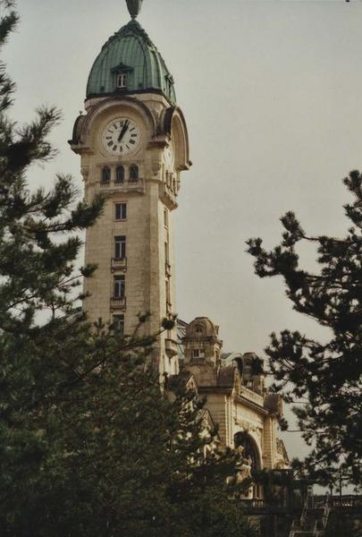 Remplaçant une première gare datant de 1856, l'actuelle gare des Bénédictins, conçue dès 1917, est construite de 1925 à 1929 pour la Compagnie du Paris-Orléans par Roger Gonthier, architecte de la compagnie, sous les ordres de l'ingénieur Julien. Etabli au-dessus des voies sur une plate-forme en béton armé, l'édifice se signale par son décor d'architecture et ses sculptures en façade évoquant les activités industrielles de la ville et signées par Henri Varenne. Dans le hall d'accueil, couvert d'un dôme de 31 mètres de haut, les verrières sont dues au maître-verrier Francis Chigot ; elles combinent des motifs géométriques et végétaux (des feuilles de châtaignier). La gare, qui comporte aussi un campanile de 61 mètres de haut, a été réhabilitée par la SNCF en 1979. Le dôme, victime d'un incendie en février 1998, a été restauré en 1998-2000.