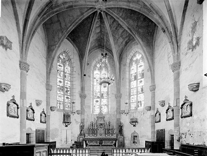 L'église renferme des vitraux du 16e siècle. Le clocher a été construit en 1875. Les deux travées de choeur ont conservé leurs dispositions, les voûtes et les chapiteaux anciens. La première travée est en partie ancienne mais la voûte a été refaite. Deux chapelles sont aménagées entre les contreforts, de chaque côté du choeur.