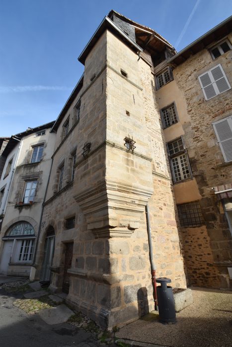 Selon la tradition, la maison aurait abrité la sénéchaussée mais aucun document ne le certifie. L'angle de la maison est occupée par une tour carrée reposant sur un culot dont les moulures viennent s'amortir à deux mètres environ du sol. A chaque étage, le bandeau horizontal de la façade se continue sur le pourtour de la tourelle mais avec un profil différent. Prenant appui sur cette moulure, un jour rectangulaire s'ouvre sur chaque face.
