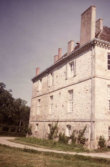 Il existait un château en 1573, incendié pendant les guerres de Religion puis restauré. Le nouveau château est bâti vers 1785. L'édifice est traditionnellement attribué à l'architecte Brousseau. Il présente un plan en U avec un corps de logis principal rectangulaire et deux ailes en retour d'équerre. Sur un étage en soubassement s'élèvent un rez-de-chaussée surélevé, un étage et le comble. Les façades sont rigoureusement ordonnancées mais plusieurs éléments évitent la monotonie. La façade ouest sur cour présente un avant-corps central et un escalier à double révolution. La façade Est arrière a, de part et d'autre, deux légers décrochements. A l'intérieur, trois pièces sont ornées d'un décor caractéristique de la fin du règne de Louis XVI. Au rez-de-chaussée, le grand salon d'apparat a ses murs ornés de boiseries moulurées et un parquet en marqueterie. Au premier étage, la chambre a tous ses murs ornés de boiseries fin 18e. Les dessus de portes sont ornés d'une guirlande surmontée d'un noeud. La chambre bleue a une alcôve soulignée de boiseries ornées.