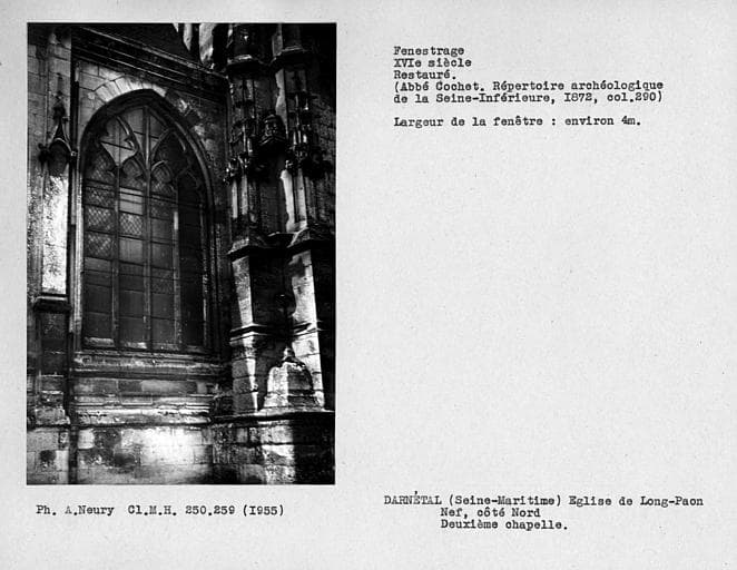 (c) Monuments historiques. Cette notice reprend intégralement les termes de l’arrêté de protection au titre des Monuments historiques. Elle répond à l’obligation réglementaire du ministère de la Culture d’établir la liste générale des immeubles protégés (art. R. 621-80 du Code du patrimoine). Elle est donc opposable et fait foi juridiquement. Aucune copie numérique ou papier ne sera fournie par courrier ni courriel. Le dossier de protection complet et l’arrêté sont consultables uniquement sur place, dans la salle de lecture de la Médiathèque du patrimoine et de la photographie (MPP), à Charenton-le-Pont (Val-de-Marne).