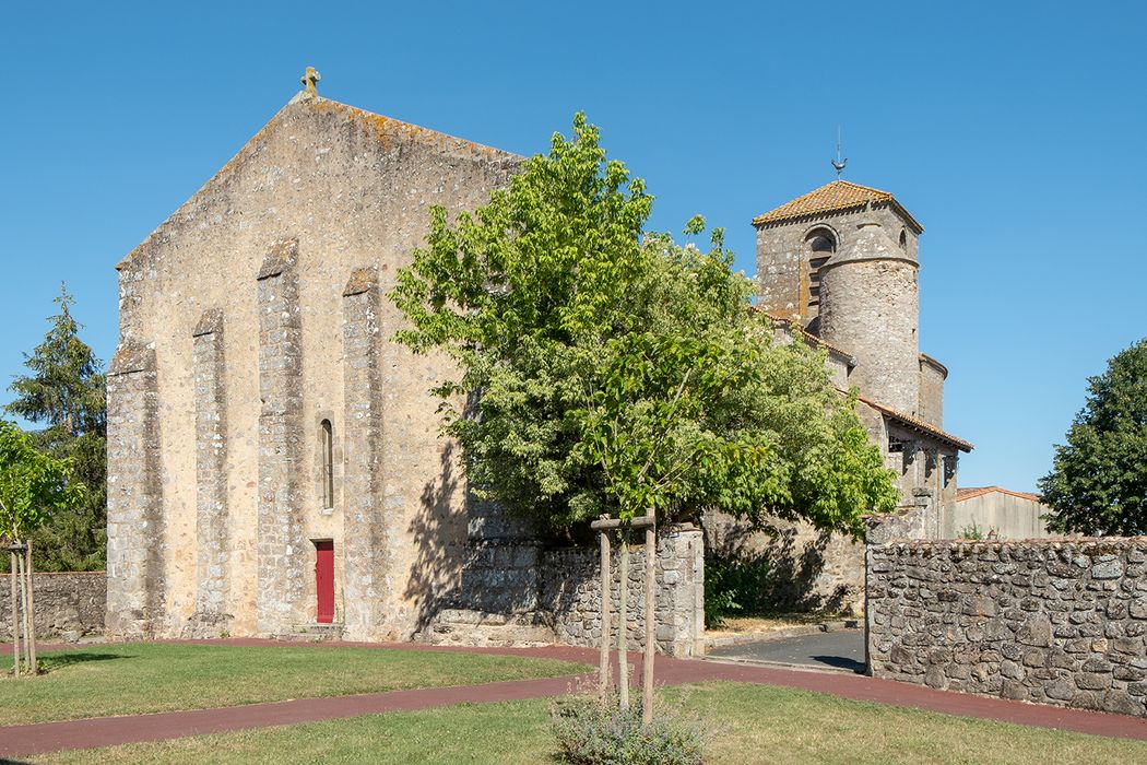 Edifice appartenant à un prieuré relevant de l'abbaye de Luçon, en Vendée. Selon la tradition, il serait bâti à l'emplacement d'une fondation datant au moins du début du 8e siècle. Cette église présente un curieux exemple de sanctuaire à déambulatoire sans chapelles rayonnantes, solidaire d'une nef dépourvue de bas-côtés. Les arcades du déambulatoire, tracées en arc brisé exhaussé, retombent sur des piliers quadrilobés, à l'exception de ceux qui se situent à l'entrée du choeur. Un cul de four et un berceau brisé couvrent l'abside, tandis qu'un berceau tournant à doubleaux voûte le déambulatoire. La jonction du choeur avec la nef s'effectue par trois arcades ouvertes de front, portées par deux forts piliers à huit colonnes soudées entre elles. Une charpente du 15e siècle, aux angles chanfreinés, à dix traverses et dix albaletriers cintrés, couvre la nef. Le clocher latéral, carré, accosté d'une tourelle, occupe une position sur la première travée sud du déambulatoire.