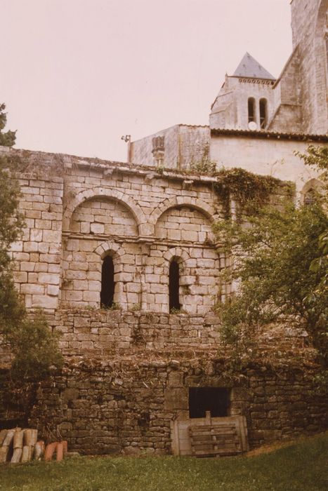Jouxtant l'abbatiale Notre-Dame, au sud de la sacristie, l'ancienne église paroissiale conserve des restes de l'époque romane et de la fin du 12e siècle, d'esprit gothique. En partie détruite, elle est bâtie sur un terrain en forte déclivité. Elle conserve une crypte (cave) voûtée en berceau au premier niveau, et une chapelle à chevet plat. La nef de l'église se développait au-dessus de ces deux niveaux. Il n'en reste aujourd'hui qu'un faisceau de piles engagées et le départ des nervures de voûte, mais elle a dû rester intacte jusqu'à la Révolution, époque à laquelle elle est dépecée. Le chevet de la chapelle, cantonné de deux larges contreforts plats, est percé de deux baies en plein cintre, inscrites dans deux arcatures également en plein cintre, réunies par une colonnette centrale. Les chapiteaux sont ornés de feuillages et de crochets.