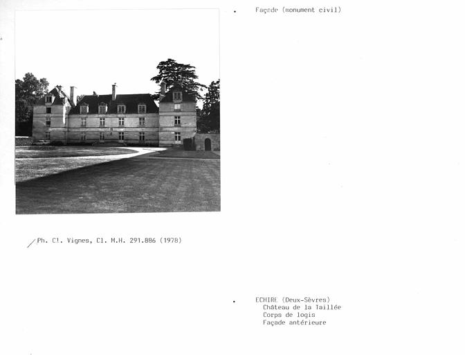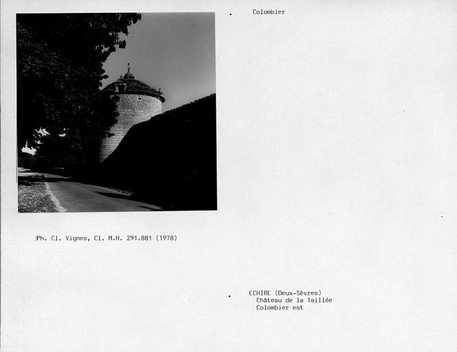Entre 1636 et 1642, la famille protestante des Du Fay de la Taillée fait construire le château et les communs qui ferment la cour au nord. Ces communs sont ponctués par deux tours-pigeonniers implantées symétriquement de part et d'autre du bâtiment d'entrée, lui-même gardé par une bretèche à deux tourelles en surplomb couvertes d'un dôme de pierre. Les pigeonniers ont conservé leur toit de pierres plates sur voûte, orné de lucarnes à fronton triangulaire et surmonté d'un lanternon. Leur rez-de-chaussée est aménagé pour la défense. La composition originelle d'ensemble est complètement préservée.