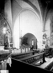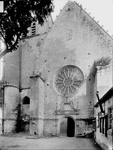 Edifice du 16e siècle, terminé par un chevet droit percé d'une grande verrière, et par un pignon de façade orné d'une imposante rosace. L'intérieur présente quatre travées de différentes largeurs, couvertes de voûtes d'arêtes et flanquées, à droite et à gauche, de parties en berceau entre contreforts intérieurs. Ornementation Renaissance.