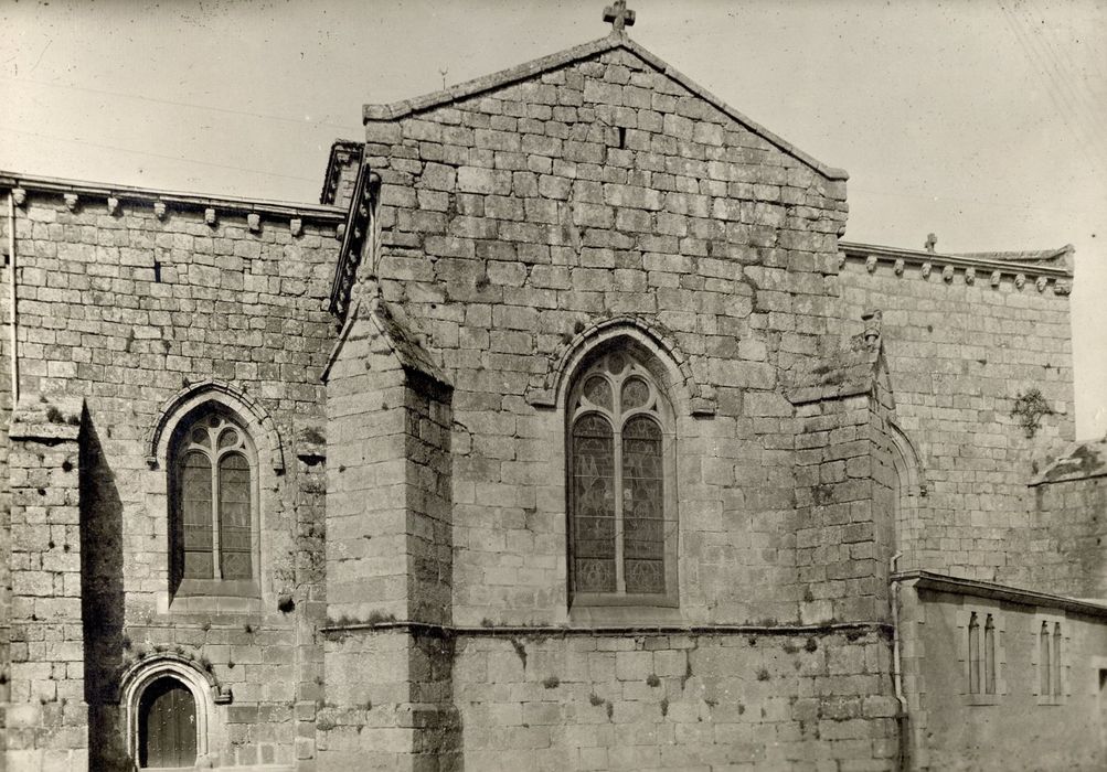 Eglise du 14e siècle, composée d'une nef, d'un transept et d'un choeur à chevet plat. L'ensemble est voûté d'ogives avec liernes. Le transept nord est surmonté d'un clocher carré, massif. Les réseaux des baies ont presque tous été refaits.