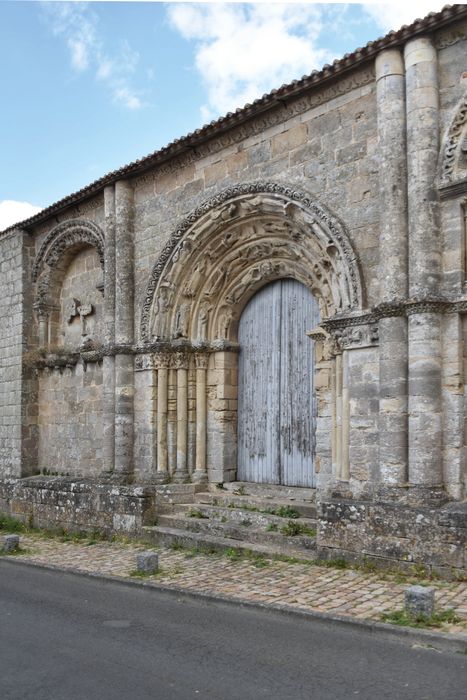 L'église a été démolie au début du 18e siècle et des fragments de sculptures intégrés dans les propriétés voisines, en particulier des fragments de chapiteaux (sacrifice d'Abraham ; combat de David contre Goliath). Le portail ouest est intact, avec ses sculptures. Il subsiste également une petite porte encadrée de deux colonnes avec chapiteaux, au-dessus archivolte complète.