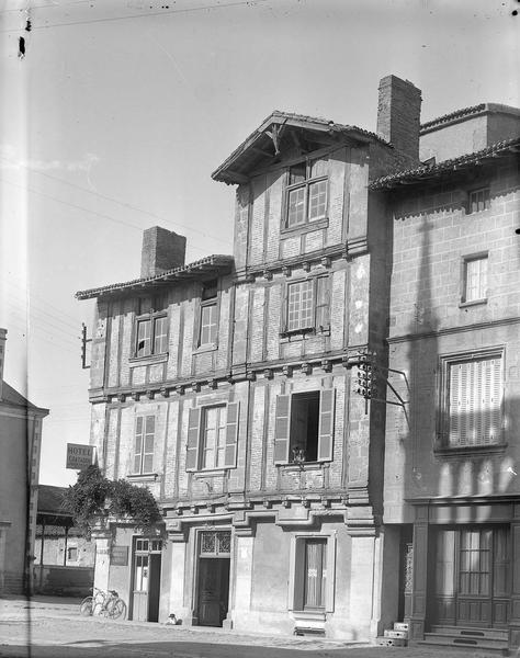 Façade en pans de bois, ayant deux et trois étages en encorbellements successifs. Les fenêtres des deuxième et troisième étages ont conservé leur aspect primitif. A l'intérieur, plusieurs pièces présentent des planchers ayant conservé leurs poutres et solives apparentes. Au rez-de-chaussée se trouve une grande cheminée du 15e siècle dont le manteau est sculpté d'armoiries. L'escalier est à noyau et se termine, dans sa partie supérieure, par une voûte annulaire.