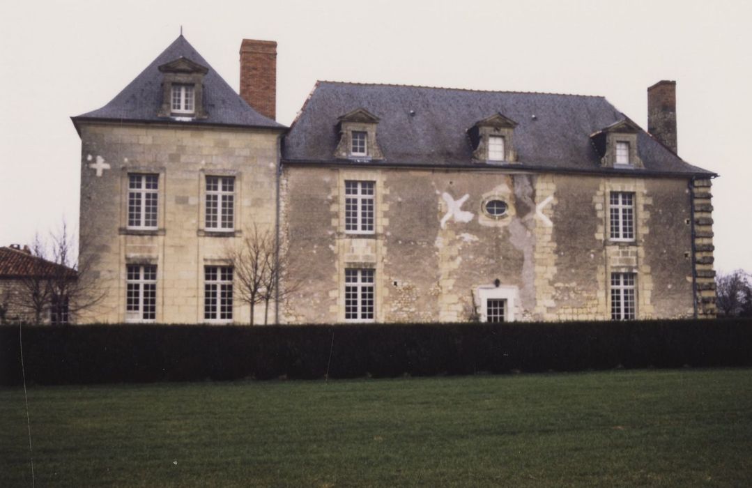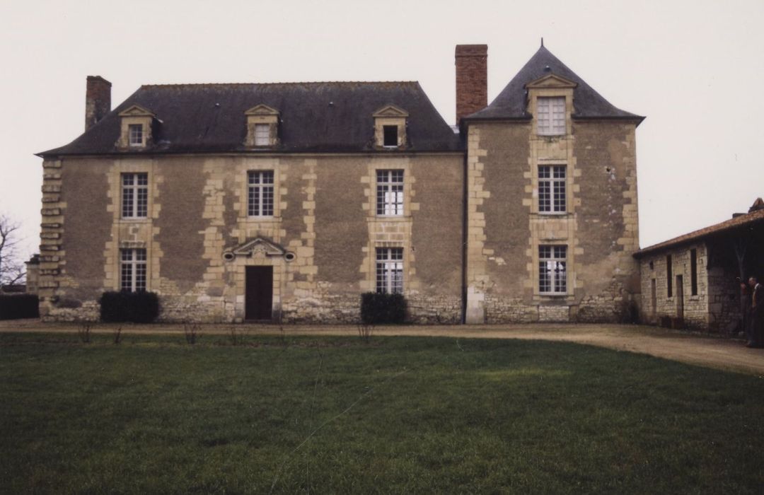 En 1645, le château est reconstruit à la suite d'un incendie, et le colombier construit. Ces travaux ont pu durer jusqu'en 1687, date indiquée au-dessus de la porte d'entrée. Sur une peinture de la cheminée du salon est représenté le château d'origine ou projeté : fuye, corps de logis cantonné de deux pavillons, deux pavillons isolés en avancée et qui marquaient l'entrée de la cour. Aujourd'hui, le logis s'inscrit dans un vaste quadrilatère fermé de longues dépendances. Un portail d'entrée à deux portes se trouve à proximité de la route. Le logis présente un corps central rectangulaire assorti d'un pavillon en avancée. Les deux niveaux sont ponctués de travées régulières. Les baies sont entourées de chaînages et les lucarnes sont à frontons-pignon triangulaires et ailerons. La porte axiale est sommée d'un fronton triangulaire avec blason et oculi latéraux. Deux cheminées à décor peint sont à signaler dans le salon et à l'étage (décor ocre jaune, ocre rouge et bleu, de rinceaux de feuillages et de fleurs sur fond marron).