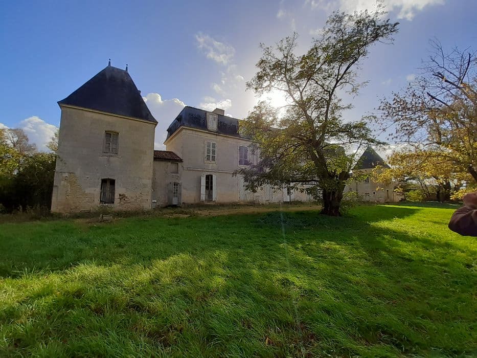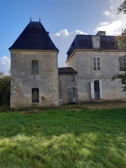 Domaine situé sur une ancienne ligne frontalière entre le Poitou et la Saintonge. Il s'agit d'un très ancien site stratégique, peut-être dès l'époque romaine, mais sûrement au Moyen-âge comme l'atteste la motte présente dans le parc. Le fief de Lens est nommé dans une charte dès 936. Le château, construit vers le milieu du 18e siècle, présente une architecture classique avec ses pavillons d'angle carrés et ses façades principales à fronton, parfaitement symétriques. L'intérieur semble avoir été réaménagé au 19e siècle (papier peint à "chinoiseries", cheminées pour poële...). Ce logis est implanté dans un quadrilatère sceint par endroit de douves, qui contient également les communs dont un rare moulin du 18e siècle, le parc et les jardins. Autour du château, ces derniers sont à la française. L'organisation s'effectue selon douze carrés et se matérialise par des allées se coupant à angle droit. Plus au nord se trouvent l'ancienne charmille et le parc à l'anglaise. Cette composition est attestée au 19e siècle mais remonte probablement au 18e siècle, du moins en partie.