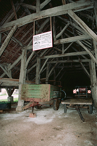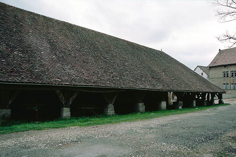 Vraisemblablement édifiées au 14e siècle (la première mention de lexistence dun marché à Belvoir date de 1314) , les halles ont accueilli jusquà la fin du 19e siècle quatre foires annuelles dimportance et un marché hebdomadaire. Elles deviennent propriété communale en 1853 et subissent divers travaux (modification des ouvertures, aménagement de logements). Lespace intérieur, entièrement charpenté, se compose de 3 nefs divisées en 13 travées. La croupe située au sud-ouest abrite un moulin à huile mû par traction animale. Alliant une fonction commerciale et artisanale, ce bel exemple darchitecture rurale a fait lobjet dune campagne de restauration en 1980.
