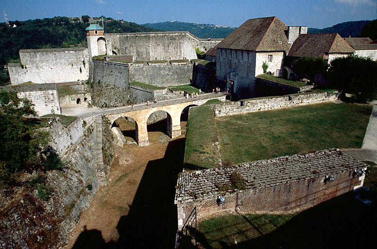 Ensemble de bâtiments constituant la Citadelle, y compris la chapelle Saint-Etienne et le puits voisin : classement par arrêté du 8 juin 1942 ; Le bastion de la porte Rivotte : classement par arrêté du 5 janvier 1944 ; Les glacis de la citadelle, la porte Taillée et la porte Rivotte faisant partie des anciens remparts de Vauban : classement par arrêté du 14 mars 1944 ; Les parties suivantes de l’enceinte urbaine : les vestiges enfouis de la contrescarpe de la tour bastionnée de Rivotte situés sur la parcelle 58 (section DK), les vestiges du rempart, même ceux enfouis, entre la tour bastionnée de la Rivotte et la tour bastionnée de Brégille, situés sur la parcelle n°11 (section AK), la partie du rempart entre le bastion du moulin Saint-Paul et les vestiges de la tour bastionnée Saint-Pierre, située 22 avenue Arthur-Gaulard, sur les parcelles n°16 et 67 (section AH), les vestiges de la tour bastionnée Saint-Pierre située rue Elisée Cusenier, sur la parcelle n°29 (section AE), les vestiges enfouis de la lunette de Bregille, situé sur la parcelle n°109 (section CX), le corps de garde est de Chamars du XVIIIe siècle, situé 2 avenue de la Gare d’Eau, sur la parcelle n°36 (section AR), l’ensemble des vestiges enfouis de la seconde ligne de remparts situés sous l’hôpital Saint-Jacques, sur la parcelle n°5 (section AV), 2 avenue de la Gare d’eau, parking du Département Doubs, 4 et 6 avenue de la Gare d’eau, sur les parcelles n°35, 44, 48 et 73 (section AR), le corps de garde nord de la porte d’Arènes, situé sur la parcelle n°164 (section AX), tels que délimités en rouge sur le plan annexé à l’arrêté : inscription par arrêté du 10 septembre 2019 ; Les parties suivantes de l ‘enceinte urbaine, tel que légendé sur le plan annexé à l’arrêté : Sur la rive gauche du Doubs : Le chemin de ronde s’étendant de la porte de Rivotte à la rue des Fusillés de la Résistance, situé faubourg Rivotte, sur la parcelle n° 42a et n° 42b, figurant au cadastre, section DK ; les vestiges enfouis de la contrescarpe de la tour bastionnée de Rivotte et le sol, situés faubourg Rivotte, dans les tréfonds de la parcelle n° 75, figurant au cadastre section AK, de la parcelle n° 107, figurant au cadastre section AK, de la parcelle n° 109, figurant au cadastre section DK, et de la parcelle n° 110, figurant au cadastre section DK, et sous l’avenue Arthur-Gaulard, sur le domaine public non cadastré, figurant au cadastre section DK ; les vestiges du rempart, même ceux enfouis, entre la tour bastionnée de Rivotte et la tour bastionnée de Bregille, ainsi que le sol situé à l’ouest des vestiges de ce rempart, situés 12 avenue Arthur-Gaulard, sur la parcelle n° 137 et dans les tréfonds de ladite parcelle, figurant au cadastre section AK, et dans le domaine public non cadastré sous l’avenue Arthur-Gaulard, figurant au cadastre section AK ; La partie du rempart située avenue Arthur-Gaulard, sur la parcelle n° 89, figurant au cadastre section AH, ainsi que ladite parcelle ; le chemin de halage situé sur le domaine public non cadastré, figurant au cadastre section AH, en contrebas des parcelles n° 16, n° 67, et n° 89 de cette section du cadastre, et sur le domaine public non cadastré situé entre le débouché de la rue de la République et le pont du même nom, figurant au cadastre à la limite entre les sections AH et AE ; les vestiges de la tour bastionnée Saint-Pierre, situés avenue Élisée-Cusenier, sur la parcelle n° 29, figurant au cadastre section AE ; Les remparts dérasés et les vestiges enfouis des anciens remparts, s’étendant depuis les vestiges de la tour bastionnée Saint-Pierre jusqu’au bastion du Saint-Esprit, partiellement situés sur la parcelle n° 29, figurant au cadastre section AE ; partiellement enfouis sous le débouché du pont Denfert-Rochereau, domaine public non cadastré, partiellement situés sur la parcelle n° 137, figurant au cadastre section AE, ainsi que le chemin de halage situé sur le domaine public non cadastré, en contrebas des parcelles n° 29 et n° 137 de la section AE du cadastre ; le bastion du Saint-Esprit, la casemate du flanc de Poitune, la casemate du flanc des Cordeliers, le rempart situé entre le bastion du Saint-Esprit et la casemate du flanc des Cordeliers et ses vestiges enfouis, ainsi que le chemin de halage, situé en contrebas de ce rempart, de ce bastion et de ces casemates, le tout situé quai Vauban sur le domaine public non cadastré, figurant au cadastre sections AD et AW ; les vestiges de casemate, situés rue Girod-de-Chantrans, figurant sur la parcelle n° 1 au cadastre section AV ; les vestiges enfouis de la seconde ligne de remparts et le sol de son ancien talus, situés sur le domaine public non cadastré, partiellement sur le chemin de halage, partiellement sous la parcelle n° 1 figurant au cadastre section AV, et partiellement sur le domaine public non cadastré, sous la rue Girod-de-Chantrans, entre les parcelles n° 1 et n° 5, le tout figurant au cadastre section AV ; les vestiges enfouis de la seconde ligne des remparts, le sol de leur ancien talus et les vestiges du pont de Chamars, situés partiellement sous l’avenue du 8-mai-1945, entre la parcelle n° 8 de la section Av et la parcelle n° 27 figurant au cadastre section AT, dans le domaine public non cadastré, partiellement sous la parcelle n° 27, figurant au cadastre section AT, et partiellement sous la voie Geneviève-de-Gaulle-Anthonioz, entre la parcelle n° 27, figurant au cadastre section AT, et la parcelle n° 5a de la section AT ; le corps de garde ouest de Chamars, situé sur la parcelle n° 27 figurant au cadastre section AT ; les vestiges enfouis de la porte Notre-Dame situés au débouché de la rue Charles-Nodier sur le faubourg Tarragnoz, figurant sur le domaine public non cadastré, sections AP et DM du cadastre ; le rempart, le fossé et la contrescarpe entre la rue Charles