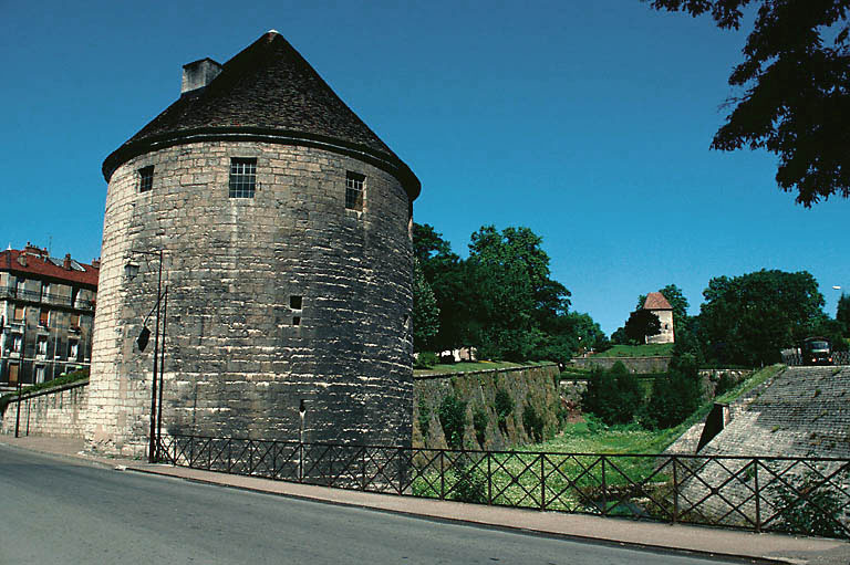 Tour de la Pelotte (fortification de la rive droite du Doubs, au Nord de la ville) (cad. AY 91) : classement par arrêté du 21 octobre 1942 ; Les parties suivantes de l’enceinte urbaine : les vestiges enfouis de la contrescarpe de la tour bastionnée de Rivotte situés sur la parcelle 58 (section DK), les vestiges du rempart, même ceux enfouis, entre la tour bastionnée de la Rivotte et la tour bastionnée de Brégille, situés sur la parcelle n°11 (section AK), la partie du rempart entre le bastion du moulin Saint-Paul et les vestiges de la tour bastionnée Saint-Pierre, située 22 avenur Arthur-Gaulard, sur les parcelles n°16 et 67 (section AH), les vestiges de la tour bastionnée Saint-Pierre située rue Elisée Cusenier, sur la parcelle n°29 (section AE), les vestiges enfouis de la lunette de Bregille, situé sur la parcelle n°109 (section CX), le corps de garde est de Chamars du XVIIIe siècle, situé 2 avenue de la Gare d’Eau, sur la parcelle n°36 (section AR), l’ensemble des vestiges enfouis de la seconde ligne de remparts situés sous l’hôpital Saint-Jacques, sur la parcelle n°5 (section AV), 2 avenue de la Gare d’eau, parking du Département Doubs, 4 et 6 avenue de la Gare d’eau, sur les parcelles n°35, 44, 48 et 73 (section AR), le corps de garde nors de la porte d’Arènes, situé sur la parcelle n°164 (section AX), tels que délimités en rouge sur le plan annexé à l’arrêté : inscription par arrêté du 10 septembre 2019 ; Les parties suivantes de l ‘enceinte urbaine, tel que légendé sur le plan annexé à l’arrêté : Sur la rive gauche du Doubs : Le chemin de ronde s’étendant de la porte de Rivotte à la rue des Fusillés de la Résistance, situé faubourg Rivotte, sur la parcelle n° 42a et n° 42b, figurant au cadastre, section DK ; les vestiges enfouis de la contrescarpe de la tour bastionnée de Rivotte et le sol, situés faubourg Rivotte, dans les tréfonds de la parcelle n° 75, figurant au cadastre section AK, de la parcelle n° 107, figurant au cadastre section AK, de la parcelle n° 109, figurant au cadastre section DK, et de la parcelle n° 110, figurant au cadastre section DK, et sous l’avenue Arthur-Gaulard, sur le domaine public non cadastré, figurant au cadastre section DK ; les vestiges du rempart, même ceux enfouis, entre la tour bastionnée de Rivotte et la tour bastionnée de Bregille, ainsi que le sol situé à l’ouest des vestiges de ce rempart, situés 12 avenue Arthur-Gaulard, sur la parcelle n° 137 et dans les tréfonds de ladite parcelle, figurant au cadastre section AK, et dans le domaine public non cadastré sous l’avenue Arthur-Gaulard, figurant au cadastre section AK ; La partie du rempart située avenue Arthur-Gaulard, sur la parcelle n° 89, figurant au cadastre section AH, ainsi que ladite parcelle ; le chemin de halage situé sur le domaine public non cadastré, figurant au cadastre section AH, en contrebas des parcelles n° 16, n° 67, et n° 89 de cette section du cadastre, et sur le domaine public non cadastré situé entre le débouché de la rue de la République et le pont du même nom, figurant au cadastre à la limite entre les sections AH et AE ; les vestiges de la tour bastionnée Saint-Pierre, situés avenue Élisée-Cusenier, sur la parcelle n° 29, figurant au cadastre section AE ; Les remparts dérasés et les vestiges enfouis des anciens remparts, s’étendant depuis les vestiges de la tour bastionnée Saint-Pierre jusqu’au bastion du Saint-Esprit, partiellement situés sur la parcelle n° 29, figurant au cadastre section AE ; partiellement enfouis sous le débouché du pont Denfert-Rochereau, domaine public non cadastré, partiellement situés sur la parcelle n° 137, figurant au cadastre section AE, ainsi que le chemin de halage situé sur le domaine public non cadastré, en contrebas des parcelles n° 29 et n° 137 de la section AE du cadastre ; le bastion du Saint-Esprit, la casemate du flanc de Poitune, la casemate du flanc des Cordeliers, le rempart situé entre le bastion du Saint-Esprit et la casemate du flanc des Cordeliers et ses vestiges enfouis, ainsi que le chemin de halage, situé en contrebas de ce rempart, de ce bastion et de ces casemates, le tout situé quai Vauban sur le domaine public non cadastré, figurant au cadastre sections AD et AW ; les vestiges de casemate, situés rue Girod-de-Chantrans, figurant sur la parcelle n° 1 au cadastre section AV ; les vestiges enfouis de la seconde ligne de remparts et le sol de son ancien talus, situés sur le domaine public non cadastré, partiellement sur le chemin de halage, partiellement sous la parcelle n° 1 figurant au cadastre section AV, et partiellement sur le domaine public non cadastré, sous la rue Girod-de-Chantrans, entre les parcelles n° 1 et n° 5, le tout figurant au cadastre section AV ; les vestiges enfouis de la seconde ligne des remparts, le sol de leur ancien talus et les vestiges du pont de Chamars, situés partiellement sous l’avenue du 8-mai-1945, entre la parcelle n° 8 de la section Av et la parcelle n° 27 figurant au cadastre section AT, dans le domaine public non cadastré, partiellement sous la parcelle n° 27, figurant au cadastre section AT, et partiellement sous la voie Geneviève-de-Gaulle-Anthonioz, entre la parcelle n° 27, figurant au cadastre section AT, et la parcelle n° 5a de la section AT ; le corps de garde ouest de Chamars, situé sur la parcelle n° 27 figurant au cadastre section AT ; les vestiges enfouis de la porte Notre-Dame situés au débouché de la rue Charles-Nodier sur le faubourg Tarragnoz, figurant sur le domaine public non cadastré, sections AP et DM du cadastre ; le rempart, le fossé et la contrescarpe entre la rue Charles-Nodier et la tour Notre-Dame, portant la montée vers la rue du Chapitre, situés partiellement sur le domaine public non cadastré, section AP du cadastre et partiellement sur la parcelle n° 19, figurant au cadastre section DM ; Sur l
