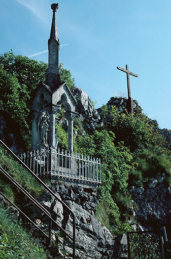Les quatorze stations du chemin de croix ; oratoire de la Vierge ; chemin qui relie l'ensemble ainsi que la terrasse supérieure ; grande croix en bois (cad. C 606) : inscription par arrêté du 23 août 1989
