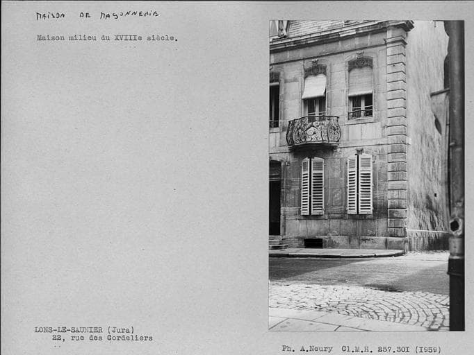 Bourgogne-Franche-Comté ; Jura (39) ; Lons-le-Saunier ; 22 rue des Cordeliers ; rue Traversière