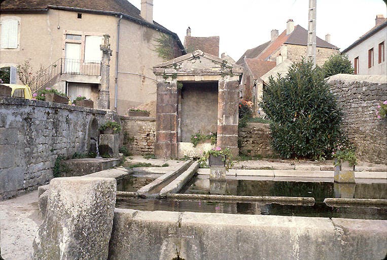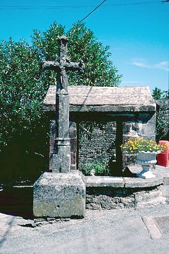Ensemble formé par la fontaine, le lavoir et la croix, au Nord du village - POP