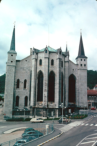 La cathédrale correspond à l'ancienne église de l'abbaye de Saint-Oyend qui remontait au haut Moyen-Age. L'édifice a été entièrement reconstruit à la fin du 14e siècle, à l'emplacement de l'abbatiale romane aujourd'hui disparue. Les incendies de 1547, 1579 et 1799 entraînent d'importantes interventions sur les parties hautes du bâtiment. L'érection de l'abbatiale en cathédrale en 1742 conduit à plusieurs campagnes de travaux et de transformations aux 18e et 19e siècles.
