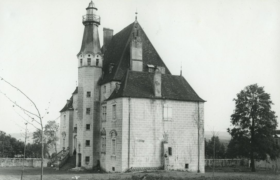 Façades et toitures du logis ; salle de bain de l'étage de soubassement du logis, avec son décor ; salon et salle à manger du rez-de-chaussée du logis, avec leur décor ; salle d'armes au premier étage du logis avec son décor ; façade Nord-Est et toiture du bâtiment des écuries (cad. AB 50) : inscription par arrêté du 6 juillet 1988