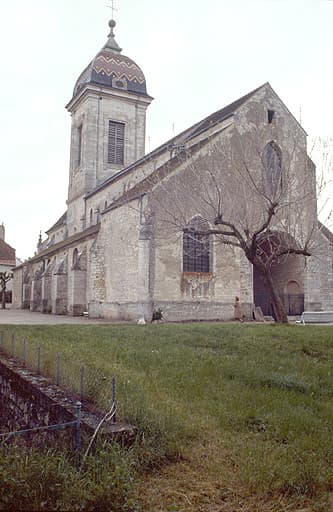 Fondée en 1153, la construction de l'église débute dans un style roman bourguignon. De ce premier édifice subsistent le portail et une travée de choeur. La nef est rebâtie au 13e siècle. Au 14e siècle, la chapelle Saint-Jean-Baptiste est reconstruite à l'emplacement d'une chapelle primitive. En 1524, le chevet est abattu de sorte à agrandir le choeur d'une travée avec abside. Entre 1555 et 1590, la nef est prolongée d'une travée. Entre 1557 et 1563, deux nouvelles chapelles sont ajoutées. L'église d'origine, avec sa façace du 13e sècle, disparaît complètement lors de ce remaniement et les ajouts adoptent le style gothique. En 1774-1775, reconstruction du clocher détruit par un incendie. De nouveaux vitraux sont installés en 1945 puis 1970.