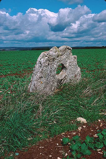 Dalle perforée de menhir dite la Pierre percée