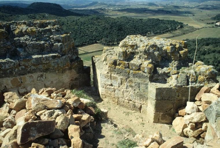 Mentionné dès 978, le château appartenait aux vicomtes de Narbonne. Dans l'enceinte, une chapelle était le siège d'une rectorie du diocèse de Narbonne, rattachée pour les redevances à la baylie de Canet. Les restes de ces constructions s'élèvent sur une colline peu distante du monastère de Fontfroide. Epousant les contours du rocher naturel, les courtines crénelées, munies d'archères courtes, semblent représenter actuellement les éléments les plus anciens du château (12e siècle), la chapelle romane étant probablement contemporaine et participant à la défense par son haut mur latéral en petit appareil. Deux tours circulaires bien appareillées paraissent un peu plus tardives (fin 12e ?). Une tour d'angle polygonale présente de longues archères à étriers et ne peut être antérieure à la fin du 13e siècle.