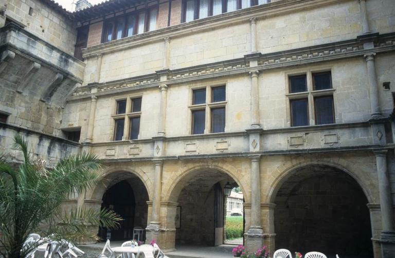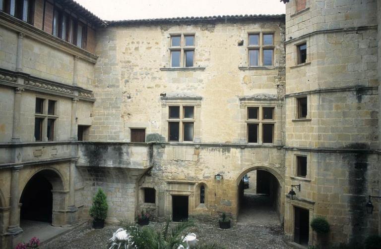 Ancien château des ducs de Joyeuse. Il ne reste que peu de vestiges d'une construction antérieure au 15e siècle, l'ensemble de l'édifice remontant à la Renaissance. Alors que la chapelle et l'entrée voisine indiquent l'époque de François Ier, le reste est de style Henri II. Les inondations de l'Aude ont rendu de bonne heure les caves du château inhabitables. La construction semble être restée inachevée pour tout ce qui concerne les couronnements sur cour et le décor intérieur. Les pièces sont couvertes de plafonds à la française. L'entrée principale, à l'est, est ornée de deux colonnes doriques, avec bossages vermiculés, couronnées d'un fronton. La défense basse, au rez-de-chaussée des tours, ne servait qu'au flanquement. En haut, au dernier étage de ces mêmes tours, sont placées les archères. Dans la cour d'honneur, la façade du portique d'entrée est ornée de trois ordres avec cartouches dans le bas sur rez-de-chaussée, gros modillons dans la frise au-dessus. Ce portique devait, au moins en projet, se terminer par une loggia couverte. Le balcon en encorbellement de l'angle nord-est n'est que le passage qui conduisait à cette galerie projetée ou aujourd'hui détruite. Les pièces de rez-de-chaussée sont voûtées d'arête, sauf les tours couvertes d'une coupole.