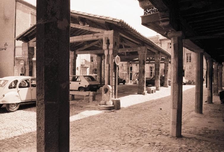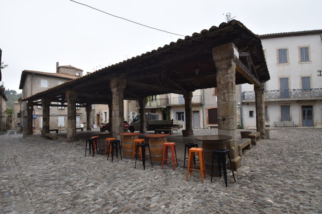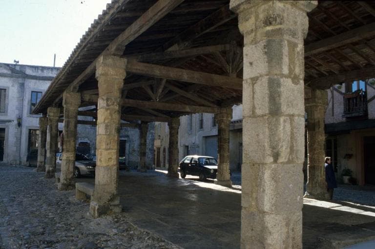 Les écussons armoriés sculptés sur plusieurs des piliers de pierre portant la charpente, permettent de dater cette halle du début du 14e siècle. La construction se compose de dix piliers portant cinq fermes. La partie abritée est dallée et meublée de six bancs en pierre. Les piliers en calcaire dur sont chanfreinés. Ces chanfreins sont arrêtés, en haut comme en bas, par un arrondi pouvant être comparé à un quart de sphère avec deux côtés coupés d'équerre.