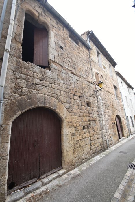 La façade, sauf une partie surélevée plus tard, est entièrement appareillée. Les ouvertures comprennent, au rez-de-chaussée, deux grands arcs surbaissés et deux lucarnes ; au premier étage, trois fenêtres géminées en plein cintre. Le comble était éclairé par deux petites lucarnes. Trois fenêtres géminées éclairaient la salle du premier étage. Il n'en reste que l'encadrement. Chacune des formes était couverte par une fausse arcature constituée par un bloc de grès tendre, entaillé suivant un plein cintre. Les chapiteaux et colonnettes ont disparu.