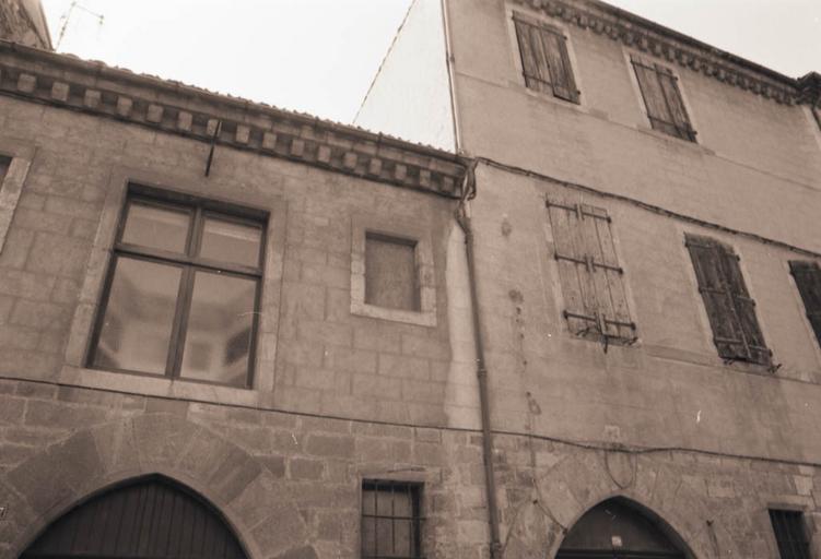 Les origines de cette maison ne sont pas connues. Elle remonte sans doute au 14e siècle. Au milieu du 16e siècle, elle abrite un hôpital pour les pauvres. En 1753, cette institution charitable porte le nom de "Dames religieuses hospitalières". Leur enclos s'est alors considérablement agrandi par l'acquisition d'autres maisons. Trois arcs s'ouvrent sur la façade sur rue. Deux sont anciens. Le troisième, l'arc de gauche, aurait été édifié au 19e siècle. Chacun de ces arcs brisés est constitué par treize claveaux, avec clef médiane. Entre eux s'ouvrent de petites fenêtres rectangulaires. L'appareil est très soigné et les arêtes vives des encadrements sont abattues par un chanfrein. La cour rectangulaire est encadrée par les murs en encorbellement dont les enduits masquent le colombage. Ces encorbellements sont supportés par des poutrelles aux extrémités sculptées, reposant elles-mêmes sur quatre grands arcs établis sur chacune des faces de la cour. Deux de ces arcs partent d'un pilier à l'angle sud-ouest. Toutes les autres retombées se font, sans pilier intermédiaire, sur des piliers engagés dans les murs du rez-de-chaussée. Il en résulte que, sauf à cet angle sud-ouest, les arcs se coupent deux à deux à 1,50m de leur retombée, leur croisement donnant lieu à une coupe biaise assez compliquée. Les sommiers reposent sur les piliers engagés par l'intermédiaire de chapiteaux simplement épanelés. Seul, le chapiteau de l'angle nord-ouest a été sculpté de feuillages. Les tailloirs gothiques sont simplement creusés d'une gorge.