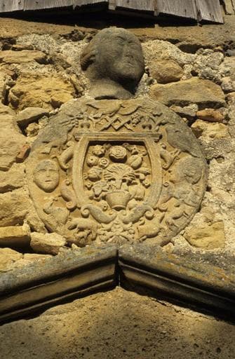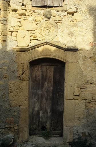 La porte d'entrée, décorée de dés à boules, est surmontée d'un écusson dans lequel les meubles d'un blason se mélangent curieusement, dans un style qui n'a rien d'héraldique, avec des figurations d'animaux de basse-cour, de fleurs et de fruits. Le tout est dominé par le buste en bas-relief d'un personnage à perruque. L'ensemble paraît dater de la seconde moitié du 18e siècle. La maison aurait appartenu à un descendant de la famille italienne des Andréossy, dont le représentant le plus connu est Francesco Andreossy, principal collaborateur de Paul Riquet dans la création du canal des Deux-Mers.