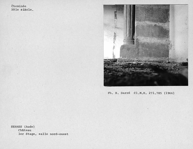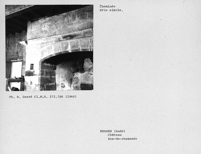 L'évêque d'Alet était le seigneur justicier de Serres et présentait à la cure, du moins aux 13e et 14e siècles. Plus tard, la seigneurie fut cédée à des particuliers. De plan à peu près carré, le château était défendu à deux angles par deux tours carrées et aux autres angles par des échauguettes en encorbellement. La tour carrée nord a conservé l'intégralité de son élévation de cinq étages. Elle est défendue, en flanquement de la courtine nord-ouest, par une canonnière rectangulaire et une embrasure à mousquet. Cette disposition et le type de la canonnière marquent le 16e siècle. La porte d'entrée était percée dans la courtine sud-est. La bretèche qui la défendait existe encore. Contre la tour carrée du nord, vers le nord-est, il existe une amorce d'arc appareillé, ancienne porte d'enceinte extérieure disparue. D'après les dispositions défensives et le tracé des moulurations des fenêtres, ces aménagements peuvent être rapportés à la fin du 16e ou au début du 17e siècle. La porte en arc et probablement le gros oeuvre des deux tours carrées et de l'échauguette ouest, doivent être antérieurs. Les reprises des murs sont visibles à plusieurs endroits, attestant l'étendue de la restauration du 16e siècle.