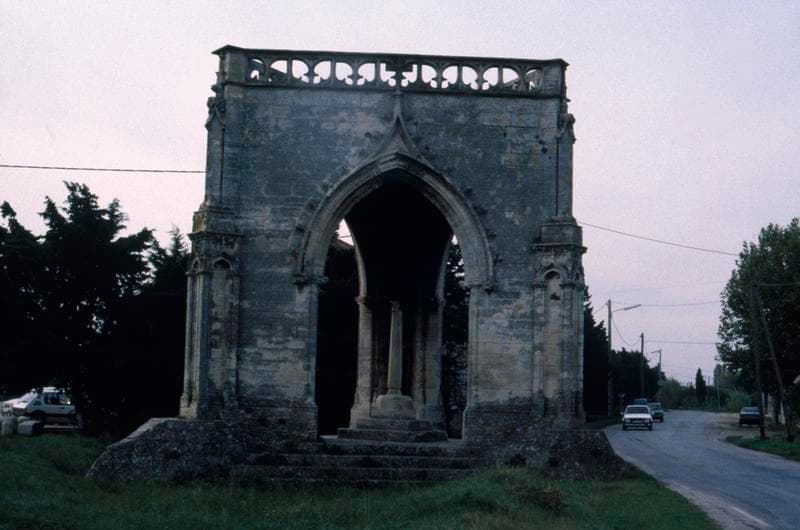 L'édicule se compose de trois faces élevées sur plan triangulaire, percées chacune d'une ouverture, enfermant un espace voûté au centre duquel s'élève une croix. Aux angles, des contreforts contrebuttent les voûtes. Une balustrade ajourée couronne l'édifice dont l'ensemble appartient à la fin du 14e sècle.
