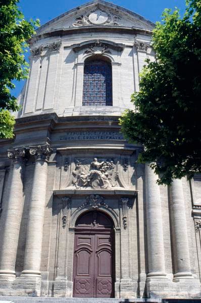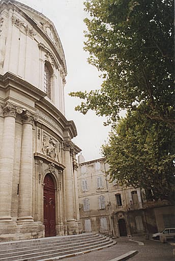 Edifice à ordonnance classique. La façade, sur plan convexe, se compose d'un ordre ionique surmonté de pilastres corinthiens, terminé par un fronton. A l'intérieur, la nef de trois travées voûtée en berceau sur doubleaux, précède la croisée du transept recouverte d'une coupole. L'abside semi-circulaire avec cul de four est décorée de pilastres ioniques. La principale caractéristique de cette église est représentée par des tribunes existant sur la première et la troisième travées des bas-côtés nord et sud, et sur la travée de bas-côté au nord et au sud du choeur. Des grilles en fer forgé forment garde-corps. Le pignon sud du transept sud a reçu une ancienne frise du 12e siècle, provenant de l'ancienne église Notre-Dame.