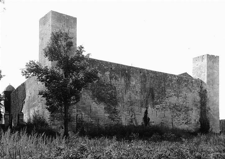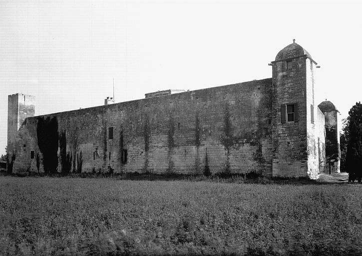 Le château, situé au point de rencontre de la voie Aurélienne venant de Rome et de la voie Dominitienne en direction des Pyrénées, a dû succéder à un "castellum" romain, devenu villa ou manoir fortifié. Il présentait un plan carré avec courtines crénelées et quatre tours d'angle. Quelques assises basses de la façade occidentale peuvent avoir appartenu à l'époque romaine, mais dans son ensemble, l'enceinte extérieure paraît appartenir au 12e siècle. Elle était entourée d'un large fossé que franchissait un pont-levis face à l'entrée principale ouest. Les quatre tours carrées étaient crénelées et renfermaient, à divers étages, des salles de garde munies d'archères. Ces tours ont été démantelées et les deux à l'ouest ont été couvertes, au début du 17e siècle, par une voûte en calotte. Un corps de logis a été établi, au 15e siècle, contre le mur nord. Il est desservi par une porte et un escalier qui paraissent avoir été reconstruits et dater de l'époque Louis XIII. Dans la cour se trouve un puits dont la margelle, surmontée d'un arc à anse de panier, flanqué par deux colonnes, appartient au 15e siècle. L'édifice a été démantelé en 1792, au cours d'une émeute survenue à Arles et qui s'est propagée.