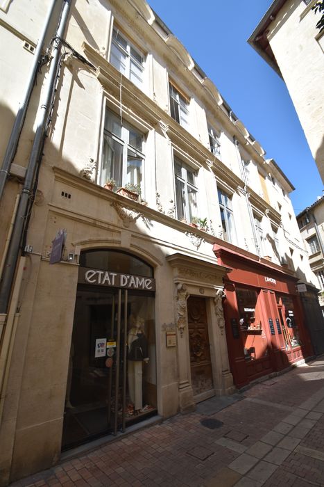 Cet immeuble est l'un des plus beaux exemples d'architecture civile nîmoise du temps de Louis XIV. Il a été reconstruit entre 1676 et 1678 à l'instigation du marchand de soie Jean Martin, par les architectes Pierre Cournon et Jacques Cubizol. A la fin du 18e siècle, ou peut-être au tout début du 19e siècle, deux travées sont ajoutées à l'est, à l'identique de ce qui a été édifié dans la seconde moitié du 17e siècle. La porte d'entrée est encadrée de deux atlantes, surmontée d'une architrave moulurée, d'une frise à rinceaux et d'une corniche à larmier ; elle possède un vantail unique à petits panneaux disposés autour d'un panneau central en forme de médaillon.