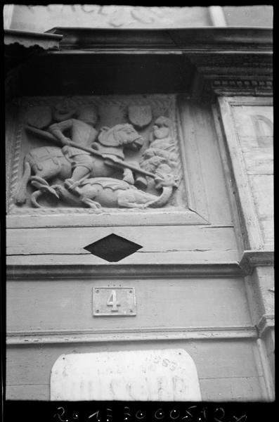 Bas-relief sculpté représentant Saint-Georges, situé au-dessus de la porte d'entrée (cad. J 196p, 197p) : inscription par arrêté du 19 mars 1964