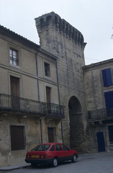 En 1356, réparation des remparts et construction de mâchicoulis. En 1590, démantèlement des remparts hormis deux tours et cette porte. Une partie de son couronnement a disparu, mais les mâchicoulis sont restés cependant presque au complet. Cette porte de six mètres de haut, surmontée d'une haute tour, est enveloppée, sur deux faces, par les constructions voisines et se relie avec la construction postérieure par deux passages voûtés sur rue.