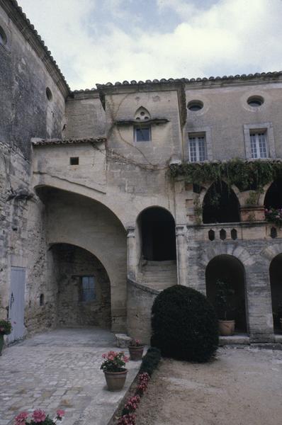 Le mas formait autrefois un monastère dépendant du chapitre de la cathédrale d'Uzès. Il souffrit des guerres de Religion et fut vendu comme bien national à la Révolution. De l'ancien monastère subsiste l'aile ouest. L'aile située en face a été remaniée au 19e siècle en magnanerie. Le bâtiment nord présente une galerie néo-gothique construite en briques, et des escaliers en arc de cercle conduisant aux tours-pigeonniers.