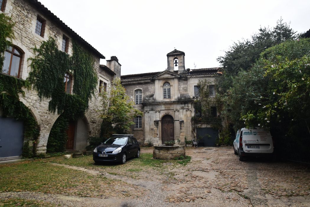 Au fond d'une cour, l'entrée se compose d'une porte ornée de quatre pilastres à chapiteaux ioniques, supportant un entablement surmonté d'une fenêtre. Le tout est couronné par un fronton triangulaire. Un petit campanile termine cette façade. A l'intérieur, la nef présente cinq travées sur lesquelles s'ouvrent, au nord et au sud, deux chapelles surmontées de tribunes.