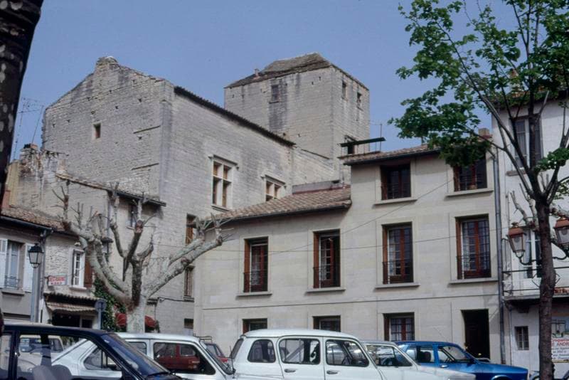 Le cardinal Léonard Rossi de Giffon, originaire de Sicile, général de l'ordre des Franciscains, aurait fait bâtir ce palais vers 1380. Il ne reste de ce palais que la tour et les ailes adjacentes. Un passage couvert, contre la tour et à droite, conduit à gauche vers une grande cour et, plus loin et à droite, vers les jardins. Ce passage a probablement remplacé, lors de la réfection de la façade de droite, un ancien passage couvert, peut-être sous poutres de bois. Quelques fenêtres au remplage trilobé ; fenêtres à meneaux. La façade de l'aile est a été remaniée. Les autres façades sur cour ne présentent aucun élément visible pouvant se rattacher aux constructions du 14e siècle. L'aile gauche comprend, à l'étage supérieur, la salle des Fêtes qui en occupait la totalité et s'étendait jusque dans la tour avec laquelle elle communiquait par une grande baie. La tour conserve deux salles au sommet dont l'accès se fait par un escalier en pierre du 17e siècle. La plus haute, située directement sous la charpente, était celle de guet et servait de corps de garde.