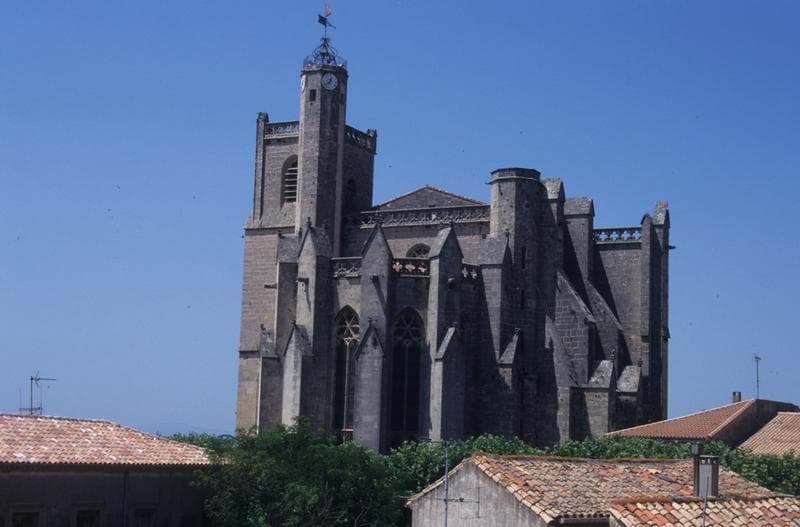 L'édifice date du début du 14e siècle et se compose d'une abside à sept pans dont trois sont éclairés par de hautes fenêtres à meneau et traverse. La nef ne comprend que deux travées, avec chapelles entre les contreforts. Le clocher se situe au sud. L'édifice est resté inachevé et s'est arrêté aux transepts dont les amorces sont visibles. Contre les deux travées du 14e siècle est resté accolé un porche qui prolonge la nef mais qui ne porte les caractères d'aucune époque bien déterminée.