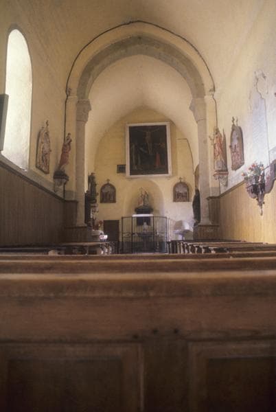 L'église est mentionnée dès 1135. A cette période correspondent certainement la travée de fond et le clocher contre lesquels la nef actuelle et le sanctuaire furent ajoutés au cours du 14e siècle, probablement pour remplacer une nef romane trop exigüe. Le choeur fut construit à l'emplacement de l'ancien cimetière. A l'extérieur, les contreforts ont servi, à la fin du 14e siècle, de support aux ouvrages défensifs (mâchicoulis). L'entrée est au nord, au fond de la nef gothique. Il s'agit d'une porte en arc brisé avec archivolte reposant sur deux culots historiés. Près du chevet, deux chapelles ont été aménagées entre les contreforts. Le clocher est éclairé, sur chacune de ses faces, par deux baies jumelles à arc plein cintre. La nef unique se termine par un chevet quadrangulaire. L'ancienne travée romane, à l'ouest, sous le clocher, fait office de narthex. Cette église correspond au type d'église méridionale du 14e siècle, conçue comme une forteresse pour répondre aux injonctions des sénéchaux de Beaucaire et de Carcassonne, après le traité de Brétigny en 1360.