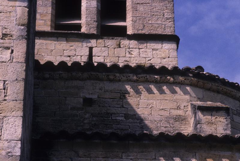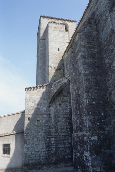 Edifice du 14e siècle comprenant un grand vaisseau voûté de deux travées de voûtes d'ogives retombant sur des culs de lampe à personnages bien traités. Le choeur polygonal est flanqué de deux chapelles inégales dont la plus grande, au nord, porte le clocher. Un porche formé par un arc lancé entre deux contreforts, abrite du côté sud un beau portail dont l'archivolte est portée par des chapiteaux à figures grâcieuses. L'abside est couronnée par une corniche de caractère roman, ornée de rinceaux à palmettes méplats qui pourraient provenir d'un édifice antérieur disparu.