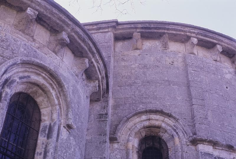 Suite à la ruine de l'église, sans doute à cause des guerres de Religion ou d'une crue du Lez, sa reconstruction est mentionnée en 1689, sur un plan réduit. L'absidiole nord, les murs de la nef et des transepts ont disparu. Le chevet et la façade appartiennent au style roman de transition du 13e siècle. Les deux culs de lampes conservés aux angles du choeur avec amorce de nervure, indiquent qu'il y a eu des voûtes renforcées de diagonaux. La porte et l'oculus datent du 17e sècle mais le mur de façade est roman, avec appareil alterné jusqu'au sommet du campanile. Le sommet présente sept corbelets qui proviennent peut-être des parties démolies. L'abside se distingue par les bandes qui la décorent, la mouluration qui encadre les baies et les corbelets sous la corniche. A l'absidiole, ces corbelets rappellent le roman bourguignon.