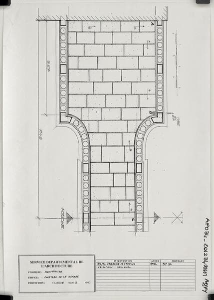© Monuments historiques, 1992. Cette notice reprend intégralement les termes de l’arrêté de protection au titre des Monuments historiques. Elle répond à l’obligation réglementaire du ministère de la Culture d’établir la liste générale des immeubles protégés (art. R. 621-80 du Code du patrimoine). Elle est donc opposable et fait foi juridiquement. Aucune copie numérique ou papier ne sera fournie par courrier ni courriel. Le dossier de protection complet et l’arrêté sont consultables uniquement sur place, dans la salle de lecture de la Médiathèque du patrimoine et de la photographie (MPP), à Charenton-le-Pont (Val-de-Marne).