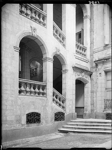 Façades sur rue et cour, couvertures et escalier ouvert sur la cour d'honneur : classement par arrêté du 2 décembre 1945