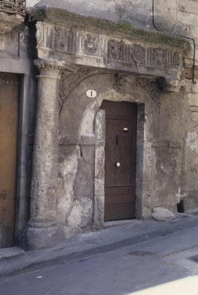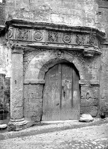 La porte dite de la Juiverie doit son nom à la proximité du ghetto de Pézenas qui datait de 1313. La porte présente un entrecolonnement d'inspiration classique avec colonnes, frise et corniche. La frise est constituée de métopes sculptées et de triglyphes. Les colonnes sont ovoïdales et la frise implantée suivant un parallélogramme, probablement pour donner un aspect perspectif plus important dans un espace restreint car l'ancienne entrée, dont l'arc est enore visible, ne semble pas avoir été biaise.