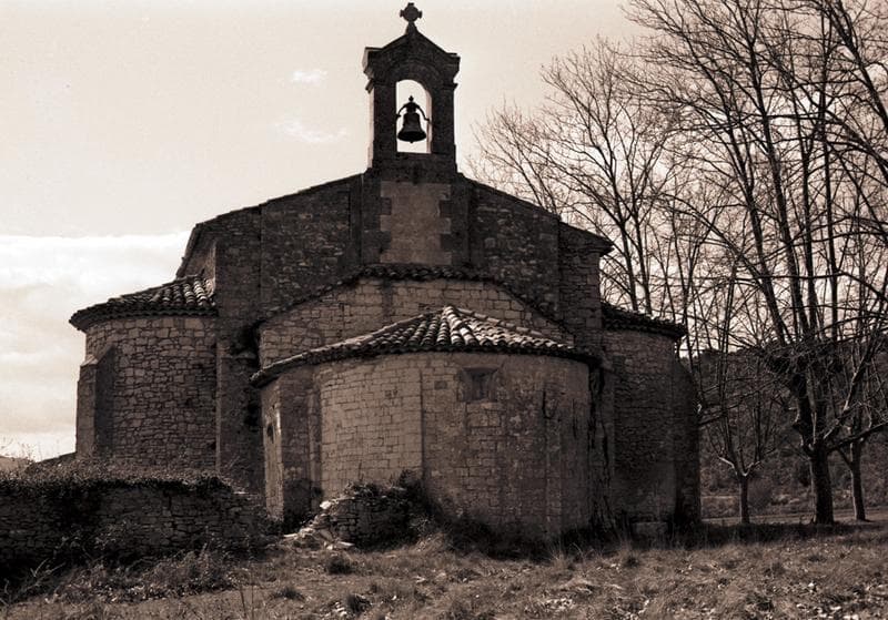 La "villa d'Alayrac" est mentionnée dans le cartulaire de Gellone à partie de 804. Au 17e siècle, un prieur desservant y résidait et l'évêque de Montpellier en était titulaire. L'église fut agrandie en 1880. Il ne subsiste de l'édifice primitif que l'abside semi-circulaire du 11e siècle et l'arc triomphal. L'édifice orienté est à nef unique de trois travées. La première travée est flanquée de deux chapelles semi-circulaires voûtées en cul de four. La nef est couverte de trois travées de fausses voûtes d'arêtes séparées par des arcs doubleaux qui prennent appui sur des piliers rectangulaires. A l'extérieur, le chevet semi-circulaire est rythmé par quatre lezènes.
